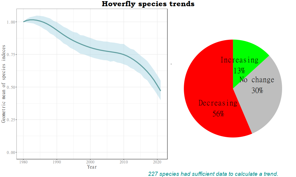 Since we last reported to this Symposium in 2011, a great deal has changed in the Hoverfly Recording Scheme's activities and in the state of British hoverflies. A big change was the establishment of a Facebook page in 2013. Prior to this, we received around 20-30,000 records per year, but few resulted from online posting. In each of the last two years we received more than 100,000 records, mostly from online postings. This has shifted the balance towards records of common and photogenic species, giving the impression that these have increased whilst the more obscure and difficult to identify have appeared to decline. This change challenges our ability to assess what is going on and has required new analytical techniques to account for evolving recorder behaviour.